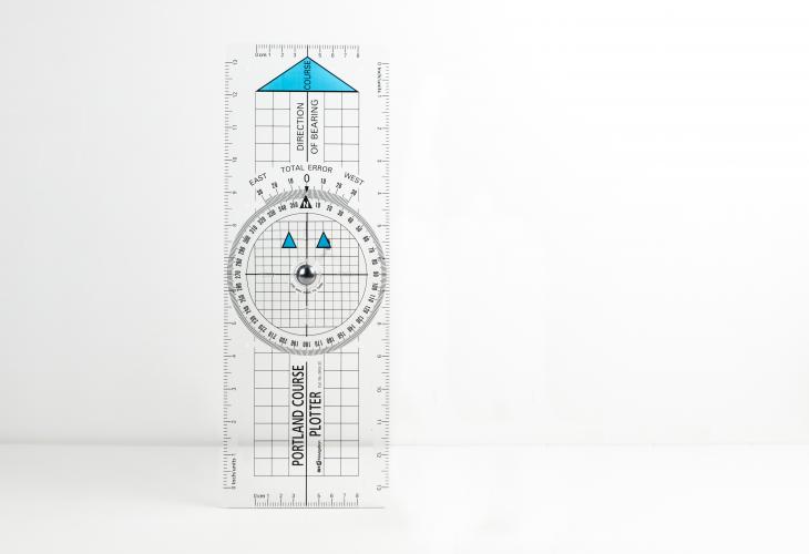 De koersplotter is nodig voor het bepalen van coördinaten en koersen. Een koersplotter is een koersliniaal die bestaat uit een brede doorzichtige liniaal met daarop een draaibare windroos.